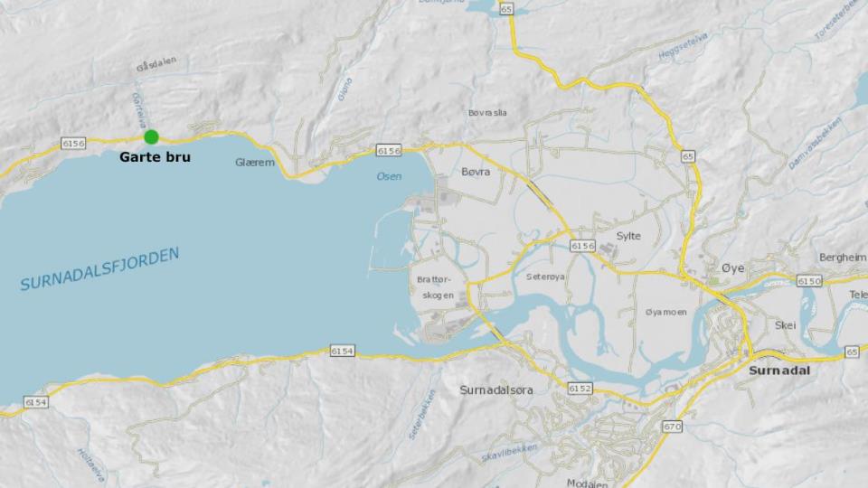 Bytter ut Garte bru Dette melder Statens Vegvesen i ei pressemelding i dag: Brua over Gartelva på fv. 6156 mellom Glærem og Hamnes i Surnadal skal byttes ut. Anleggsarbei... Publisert 07.06.2019 kl. 13:10