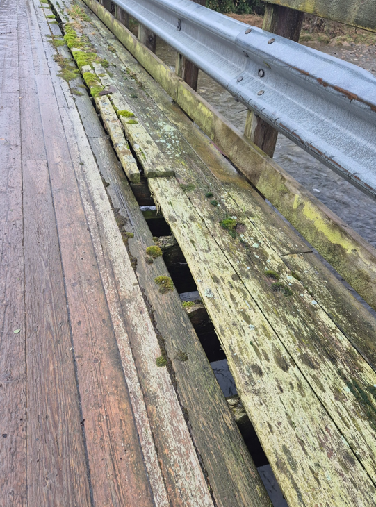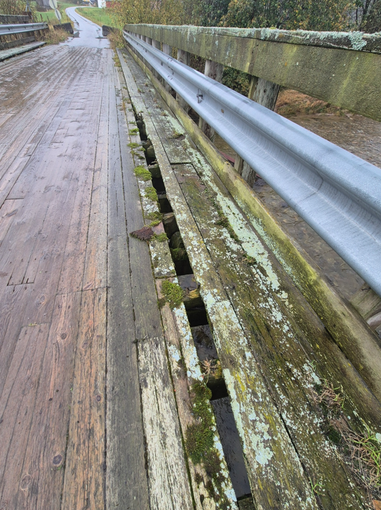 Etter siste befaring på Øyabrua i Pilskarvegen i oktober har Teknisk drift vurdert at det ikkje er tilrådeleg med ferdsel over brua. Brua er i svært dårleg forfatning.